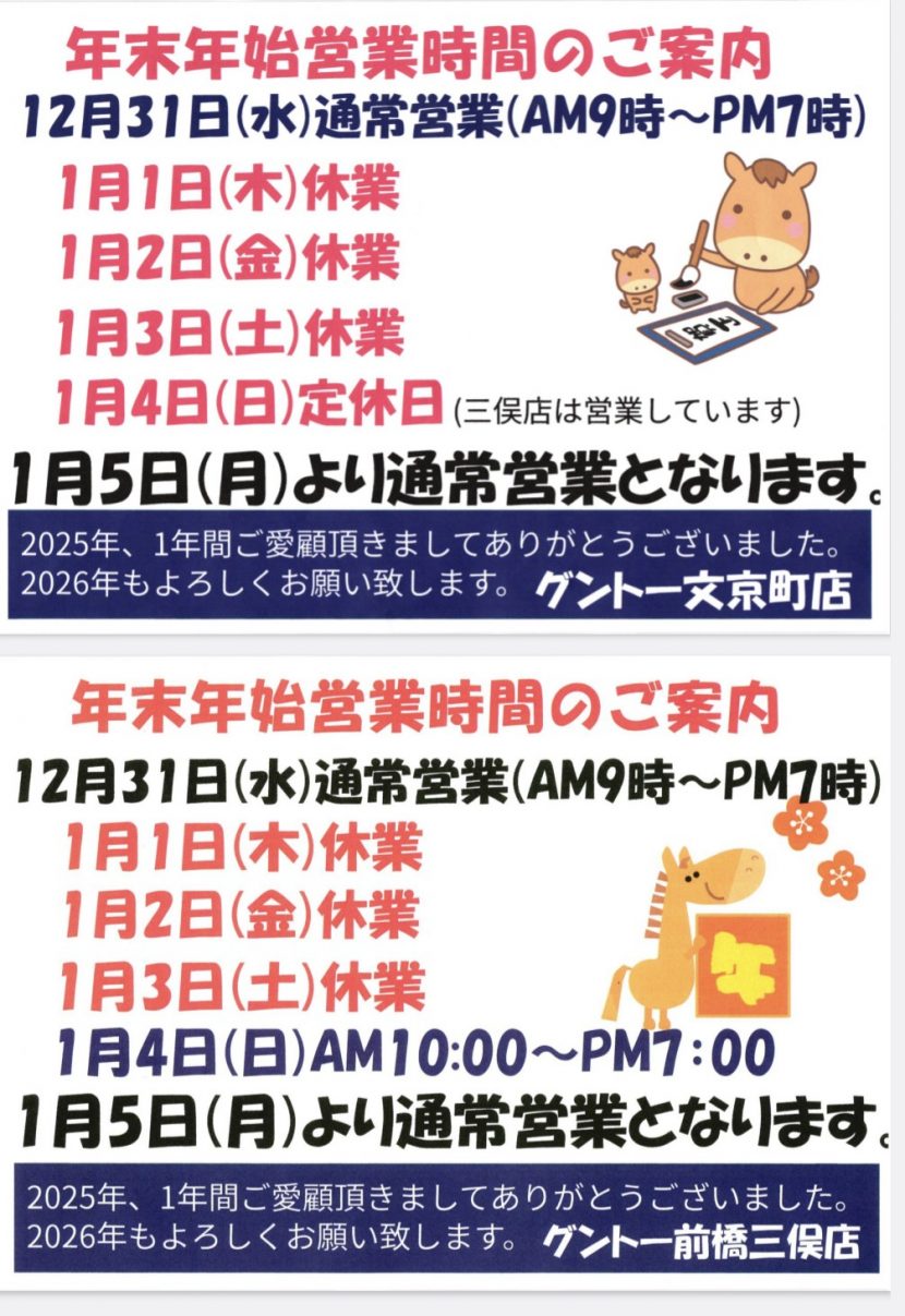 早いもので2025年、令和7年も残りわずか、年末年始営業の御案内です。